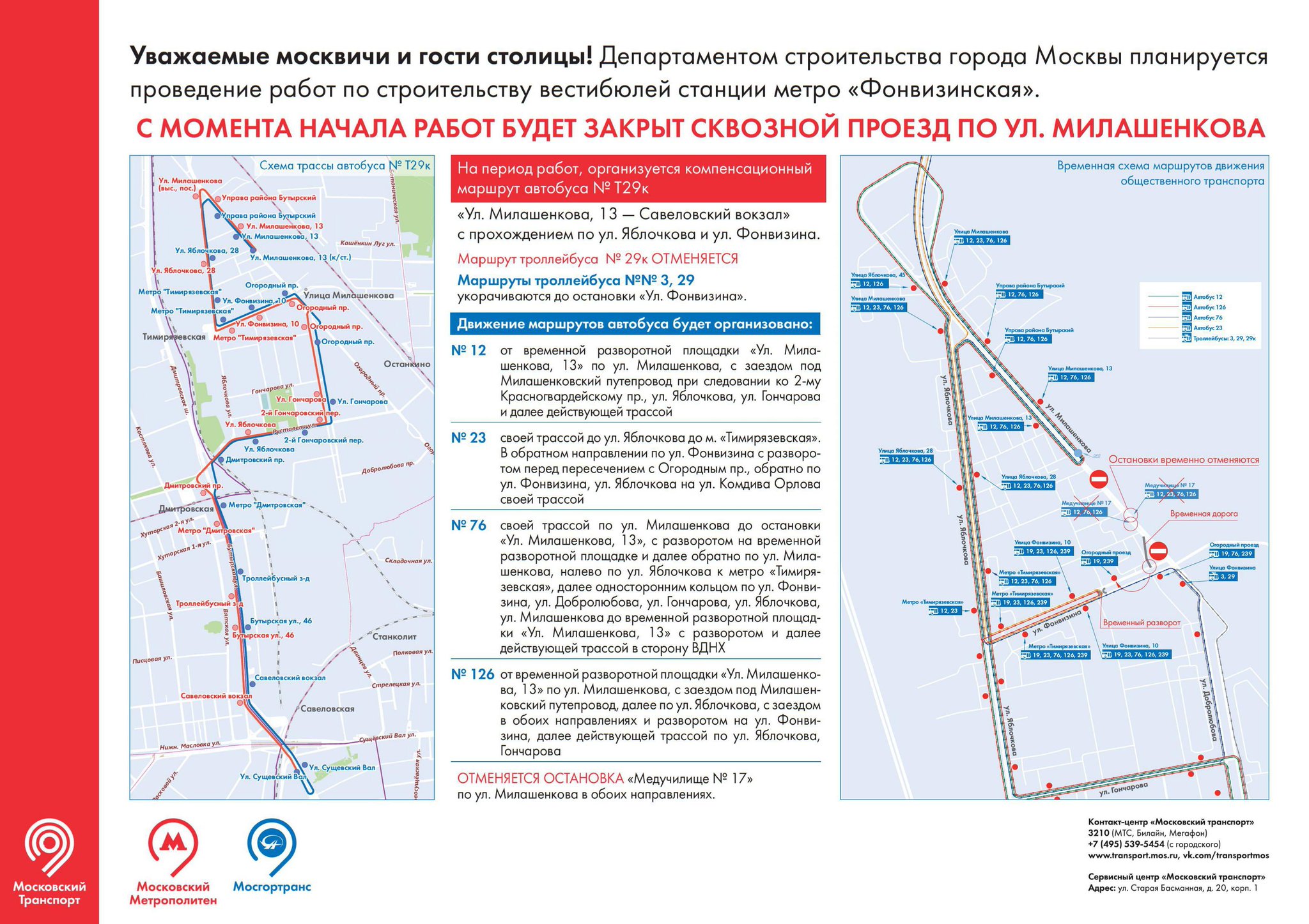 | 511915 | Планируется перекрытие участка ул. Милашенкова для постройки вестибюля станции метро. Схема перекрытия от дептранса: