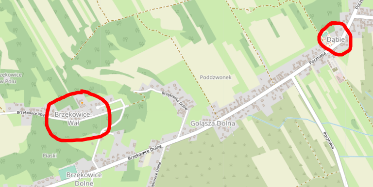 | 134418097 | Może chodzi o to że te Dąbie jest bardziej rozpoznawalne ale wygląda na to że urzędowo to Brzękowice-Wał jest? |