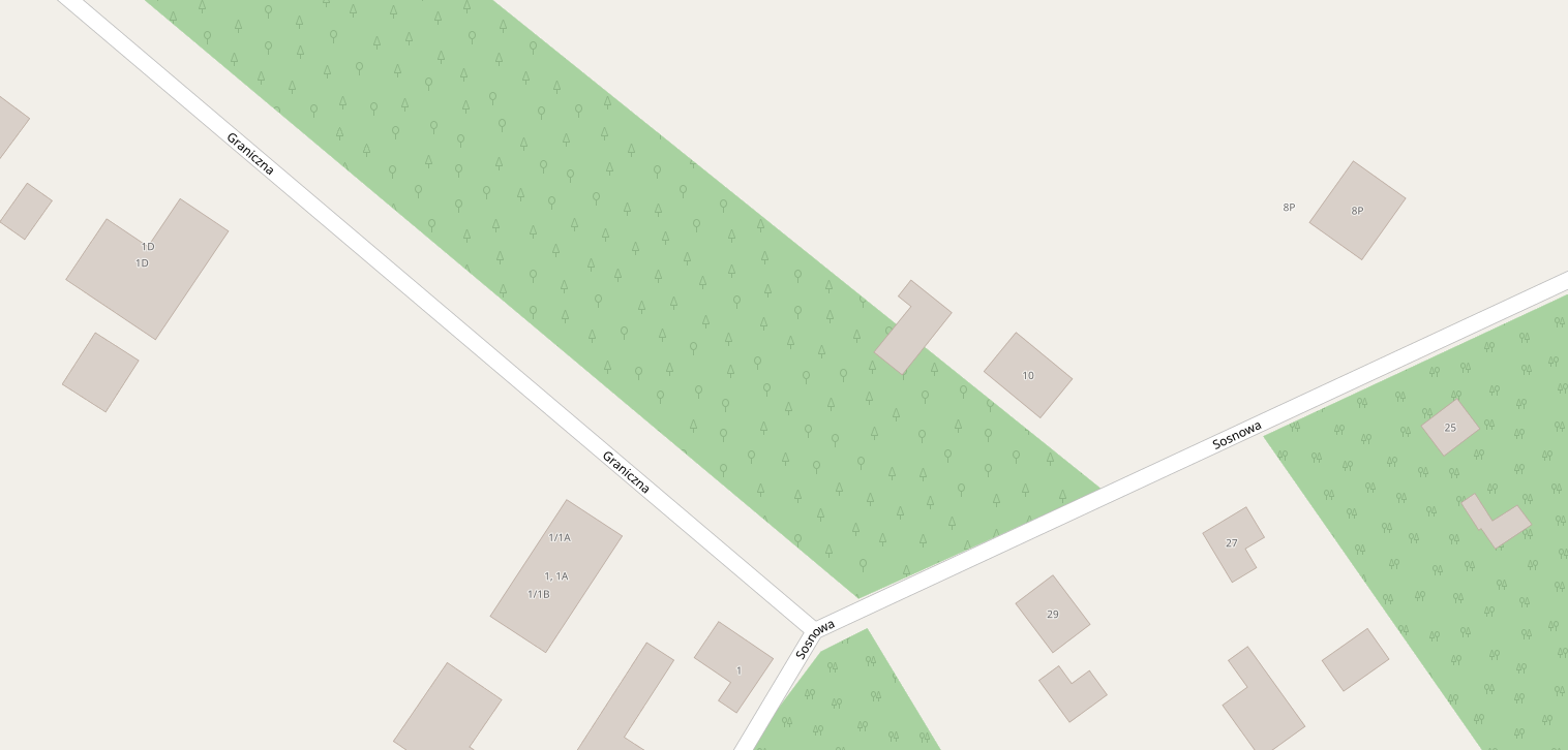 Bardzo dziwny kształt lasu w tym miejscu.